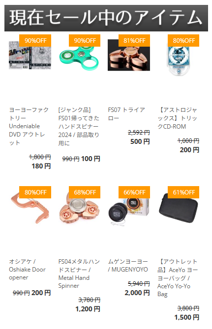あと、今回、セール期間中は、トップページの下の方に、サイト内の割引率の高いアイテムが表示されるようにしてあります。