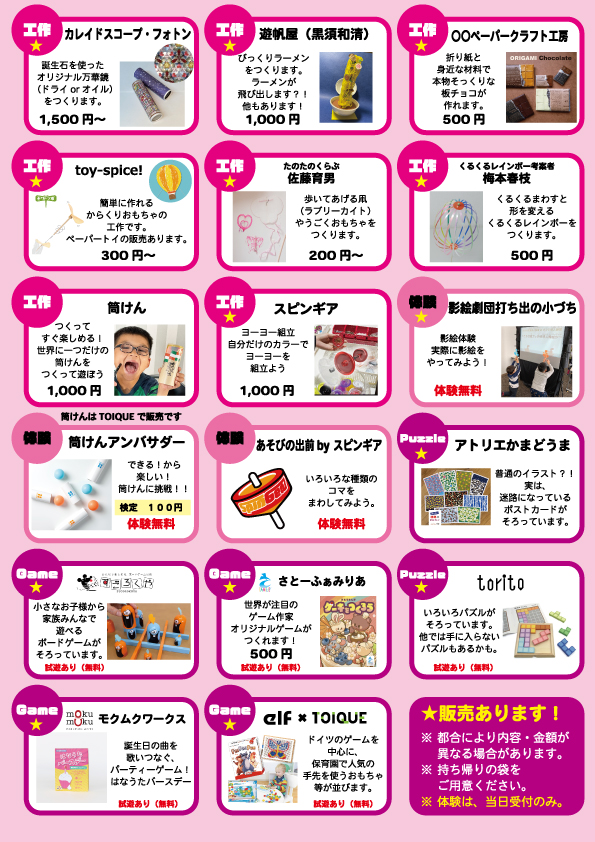 1/17~1/23までのスピンギアの動き-ヨーヨーフライデー 2026年1月23日 SG高円寺店情報 けん玉 こま ヨーヨーフライデー 入荷情報 商品情報 by AKIBA. ヨーヨープレイヤーならヨーヨーの数以上にもっていて余っているフリハンキャップをバッジにするキットを作ってみました。TPU製なので柔らかく柔軟にフィットします。 REオートスコピー / RE AUTOSCOPY サベージハンドクラッシュ / SAVAGE HANDCRASH エンプティー / EMPTY MAGICYOYO新春のメタルヨーヨーまつり Factory Outlet 2026 Magicyoyo ハブスタック用ベアリングセット 1/22(木)20時発売 オブスキュア / OBSCURE 1/22(木)20時発売 ゼティカ / ZETICA スピンガジェットPC/POM #スピガジP/ SPINGADGET P… 新潟ヨーヨーコンテスト限定アイテム スピンガジェット 限定モデルシリーズ / SPINGADGET Limited s… たすくる工房 こまのだい たすくる工房 コマの保護リング モズ’24 /Mozu’24 ビッグウィング Nano/ BigWing nano オオルリ Nano/ OHRURI nano MUGEN MUSOU 【LEAD】 ザ・メープル / The MAPLE 1月31日Kaitenトーナメント予選 この投稿をInstagramで見る JTTF(@japan_top_trick_federation)がシェアした投稿 渋谷でこまのフリースタイル大会!Takaもジャッジとして参加します。 2月11日浅草玩具フェスティバル 詳しくはこちら! ヨーヨー組み立てとこまの体験で出展。他にもあそびに対して真剣に取り組む人たちが集まる楽しいイベントです。小学生くらいのお子さんのいる家庭ならば色々楽しめること間違いなし。 店長シュンです! 寒い・寒い・・寒いです・・・でも高円寺店には熱い商品が沢山入荷! 入荷商品を是非ご覧ください! 注目はスピンガジェットPC/POMの新色が入荷! そして少量ですが4Aプロトのヨーヨーを高円寺店のみで販売! 🪀高円寺店入荷商品🪀 empathy新商品入荷 🪀バブル#ヨーヨー#スピンギア pic.twitter.com/dC1MnKGd3G — スピンギア高円寺店 (@SPINGEAR_Shop) January 17, 2026 MUGEN MUSOU入荷 ・LEAD 新仕様になりリニューアル品です。#けん玉#スピンギア pic.twitter.com/MLhYHa1H8i — スピンギア高円寺店 (@SPINGEAR_Shop) January 17, 2026 4Aプロトを高円寺店で本日発売! 在庫は現状2個までとなります! 本日15時オープンです! ご来店お待ちしております!#ヨーヨー#スピンギア https://t.co/xHreaLnENV pic.twitter.com/zbkIHTEXjX — スピンギア高円寺店 (@SPINGEAR_Shop) January 22, 2026 モズ24の新色入荷!#こま#スピンギア pic.twitter.com/harV359IkY — スピンギア高円寺店 (@SPINGEAR_Shop) January 22, 2026 スピンガジェット PC/POM 新色入荷しました!#ヨーヨー#スピンギア pic.twitter.com/Pxxgrp5nCj — スピンギア高円寺店 (@SPINGEAR_Shop) January 22, 2026 クルーシャル入荷! 🪀ザ・メープル 写真2枚目はスピンギア別注カラーとなります!#ヨーヨー#スピンギア pic.twitter.com/e48soL778f — スピンギア高円寺店 (@SPINGEAR_Shop) January 22, 2026 🪀スピンジャムin高円寺🪀 開催日:2月22日(日) 時間:12:15~14:45 参加費:100円(小学生は無料) 場所:コミュニティふらっと高円寺南 みんなでヨーヨー・けん玉・こま・スキルトイで楽しみましょう! それでは皆様Yoい週末を!! LINEでヨーヨーフライデーの更新情報や最新のスピンギアの入荷情報をお知らせしています! 前の記事