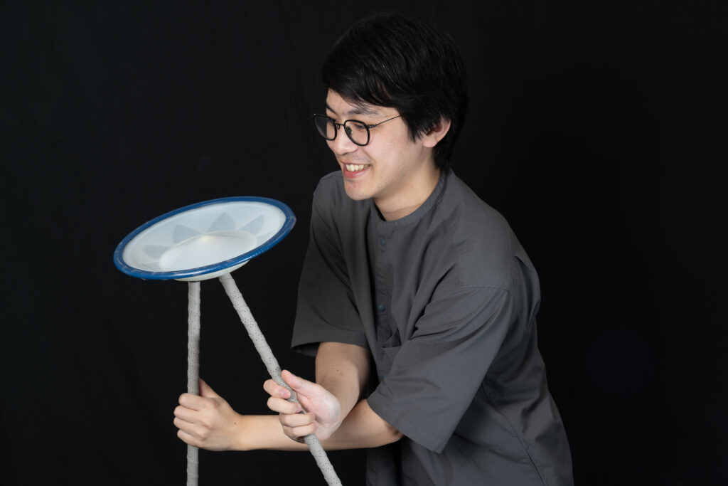 最先端の技で世界一に輝いた糸なしけん玉ダンサー。けん玉の全国大会では圧倒的な完成度で3連覇を達成。複数のけん玉を組み合わせたバランス技を主体としたスタイルで音楽と一体化しながら技をメイクして戦っている。今回も色々な場所にベアリングを仕込んだあたらしい動きに挑戦