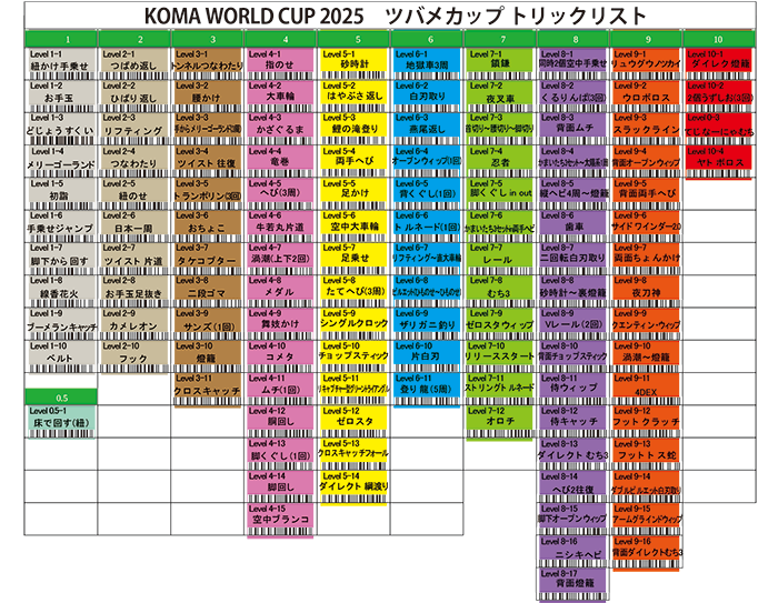・各トリックごとの成功判定ポイントやルール、失敗となってしまうやりかた等についての解説はトリック採点基準2025を確認してください。