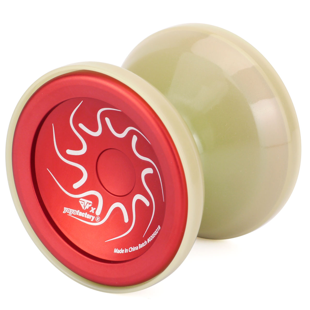 メタルヨーヨーの表面に白いPOM製カバーをかぶせた外見になっており、この外周が独立して回転する構造になっています。