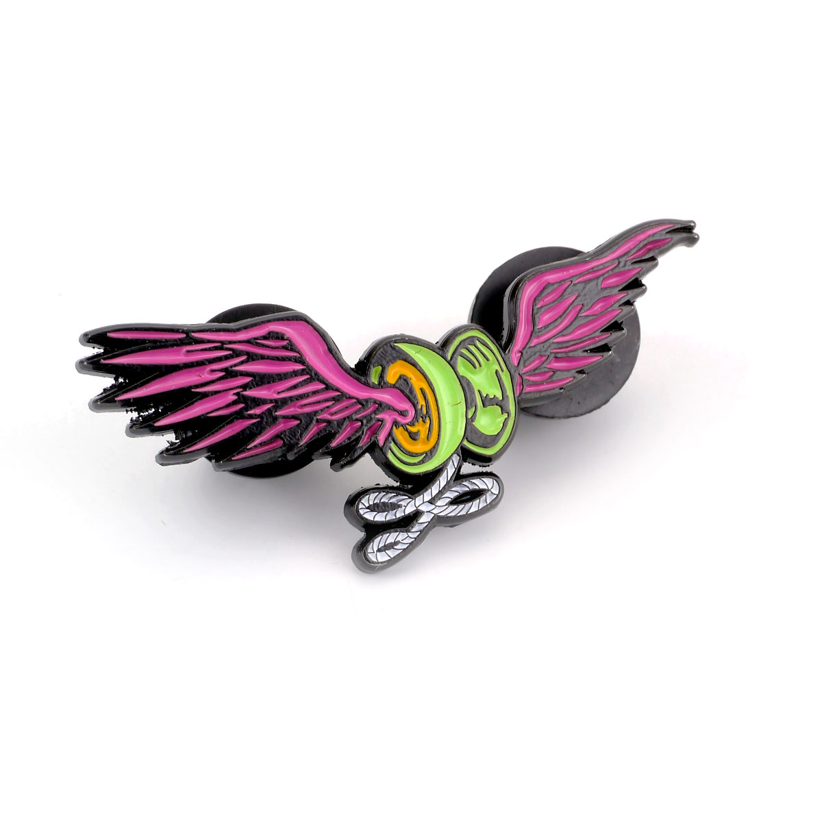 YOYOの文字何にも縛られない自由を象徴する羽がついたヨーヨー。ヨーヨーをアピールするピンズとしても秀逸なので普段使いにもぜひ。