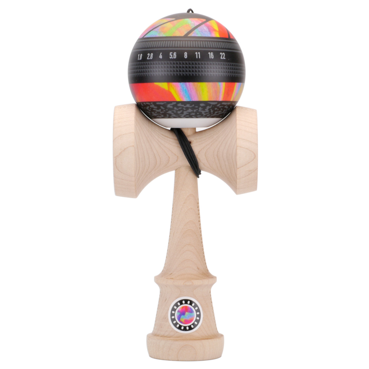 カメラのレンズをイメージした玉となっており、上部には絞り羽根の意匠がデザインされ、穴の周りは視認性の高いホワイトカラーになっています。