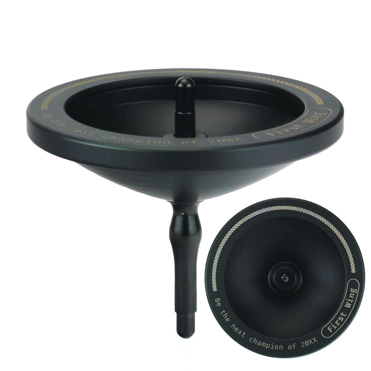 こまの練習会で室内の場合、BigWingが危険な場面も増えてきているかと思います。もちろんFirstWingだから安全、ということはないですが、上級者の人たちが狭い空間で遊ぶ時の腕試し用としてもFirstWingをお勧めします。上の部分もあえて丸く仕上げているので砂時計などは苦手ですがそのレベルに達したら次のこまにステップアップしてもいいかと思います。