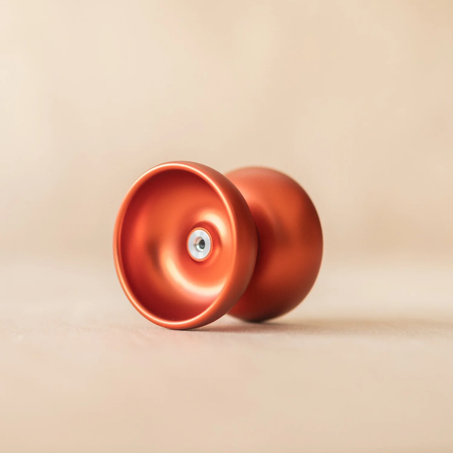 同ブランドのノーア(完売)をベースに、高津司氏による監修で設計されたサイドエフェクト搭載モデルです。新しい時代の小径モデルをつくりたいというコンセプトのもと、アトモスプロジェクトの製品を愛する高津氏自身が「アトモスプロジェクトから出す意義があるアトモスプロジェクトらしいヨーヨー」として、フィーリング、サイズ感、ネーミングにまでこだわって製作されました。