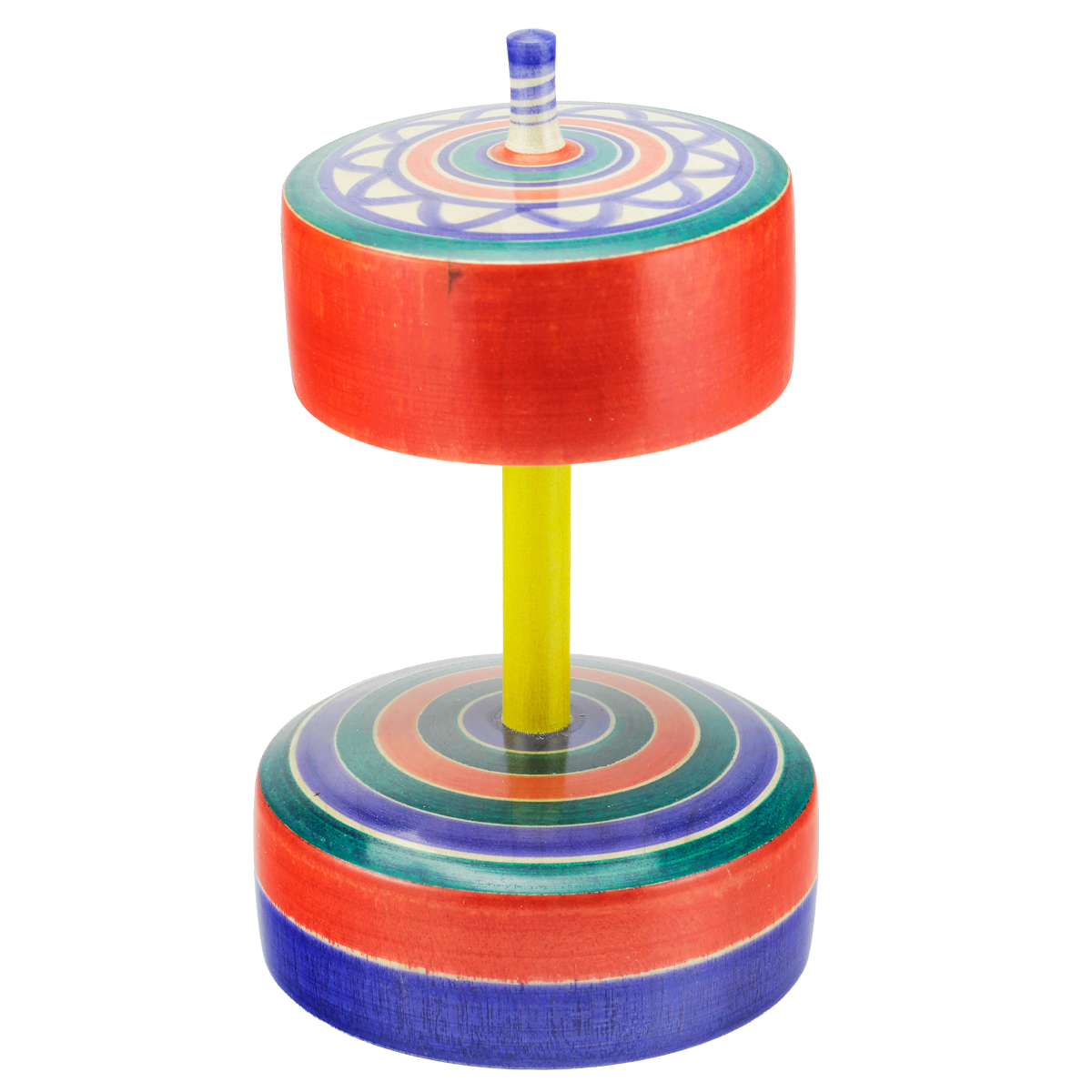和柄のランプシェードのような構造のこまは回しているととても長く回るので回転による癒しも感じることができます。