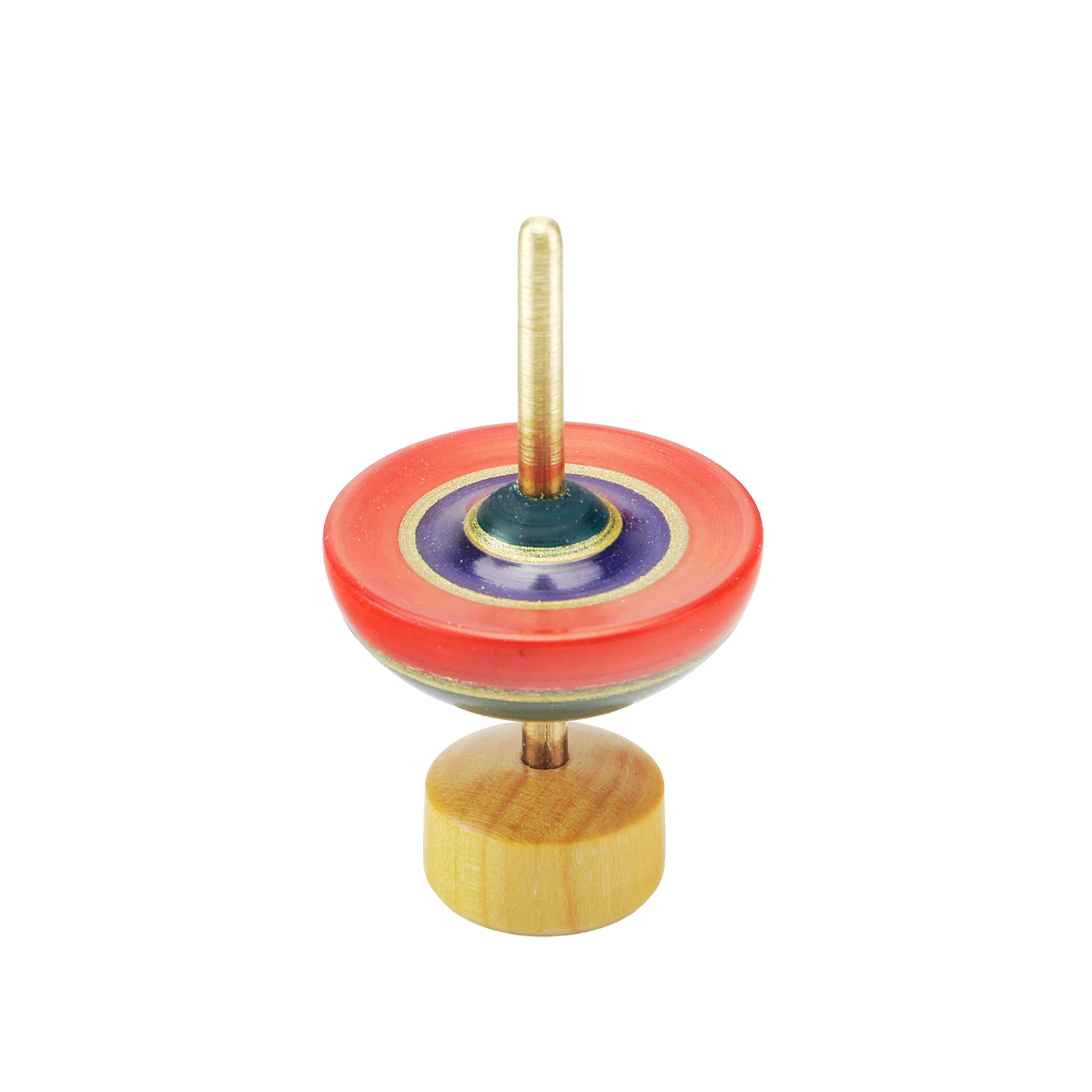 曲独楽、刃渡りのミニチュア。真鍮の軸で本物の曲独楽の雰囲気をまとっています。
