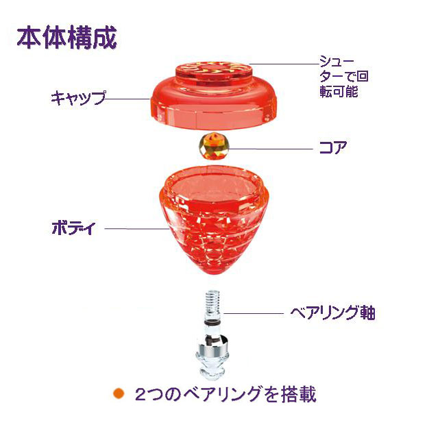 スピンギアが開発監修を行い、従来のスピントップの問題点を分析し、大きすぎず、小さすぎない調度良いサイズかつ、回転バランスのよいモデルが誕生しました。