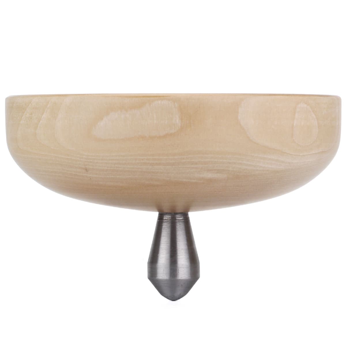 独楽職人の東正一さんの作によるちょんかけです。形を作るだけは誰でもできるのですが、形を作った後、バランス取りをしないと均一に削っていても天然木材の重心が中心に取れていることはほぼ無いので大事な作業となります。こまによっては年輪の中心をあえてずらしバランスを取っているものもあり、職人技がなせるモノ作りの奥深さです。