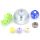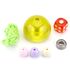半球状のウェイトをベースに、Aサイズのベアリング、紐留め用のビーズやブルダイスができる小型のダイスがセットになっています。