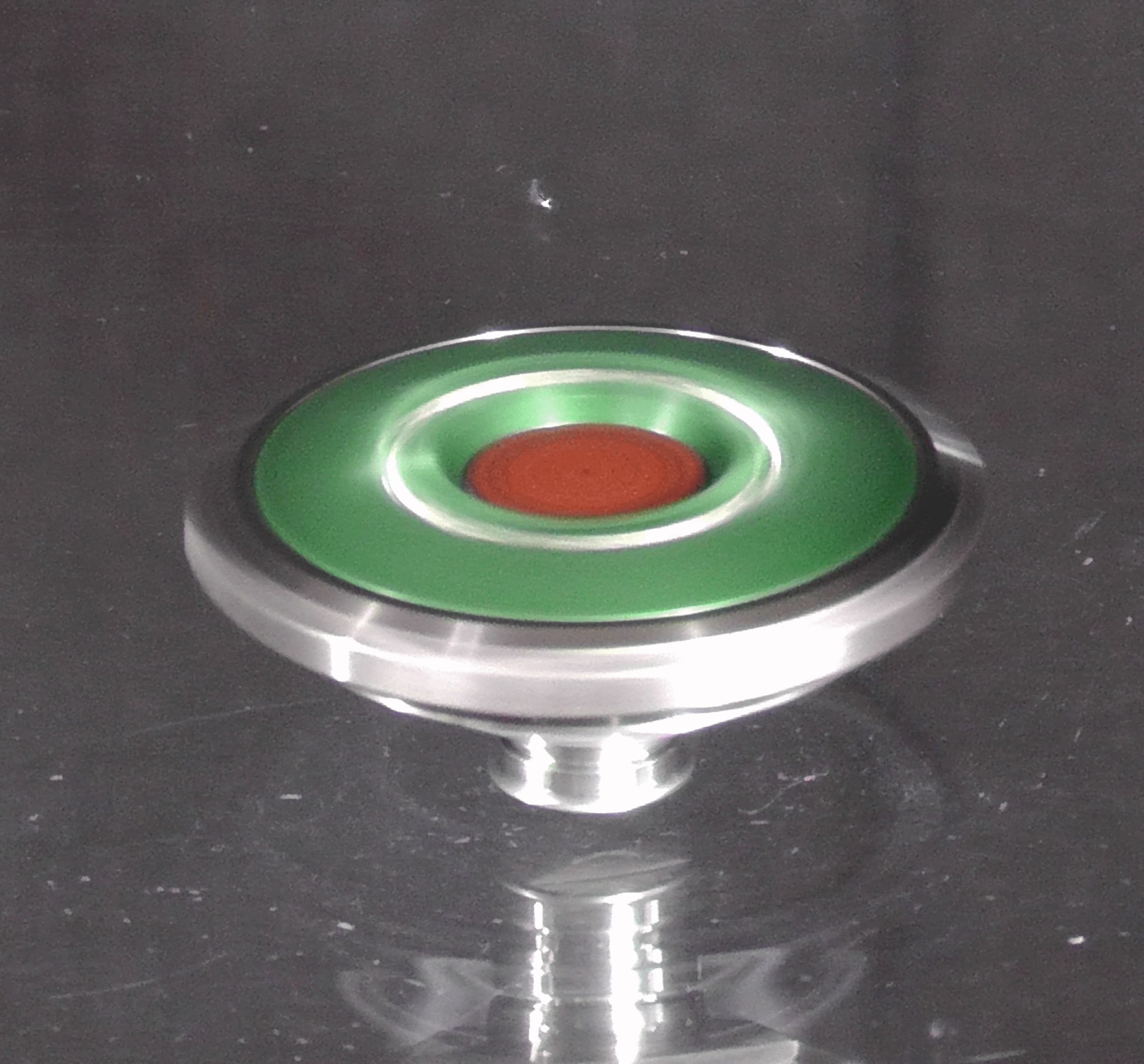 重心がやや高くゆったりと動く帆船をイメージしたモデルです。上面が中央部に向かって凹み、キズがつきにくくなっています。53g専用エアロボティを装着し総重量79g。直径46ミリ、全高23.5ミリ。 軽快に動き回らせたい場合は、より軽量な40gや45gボディーを装着できます。