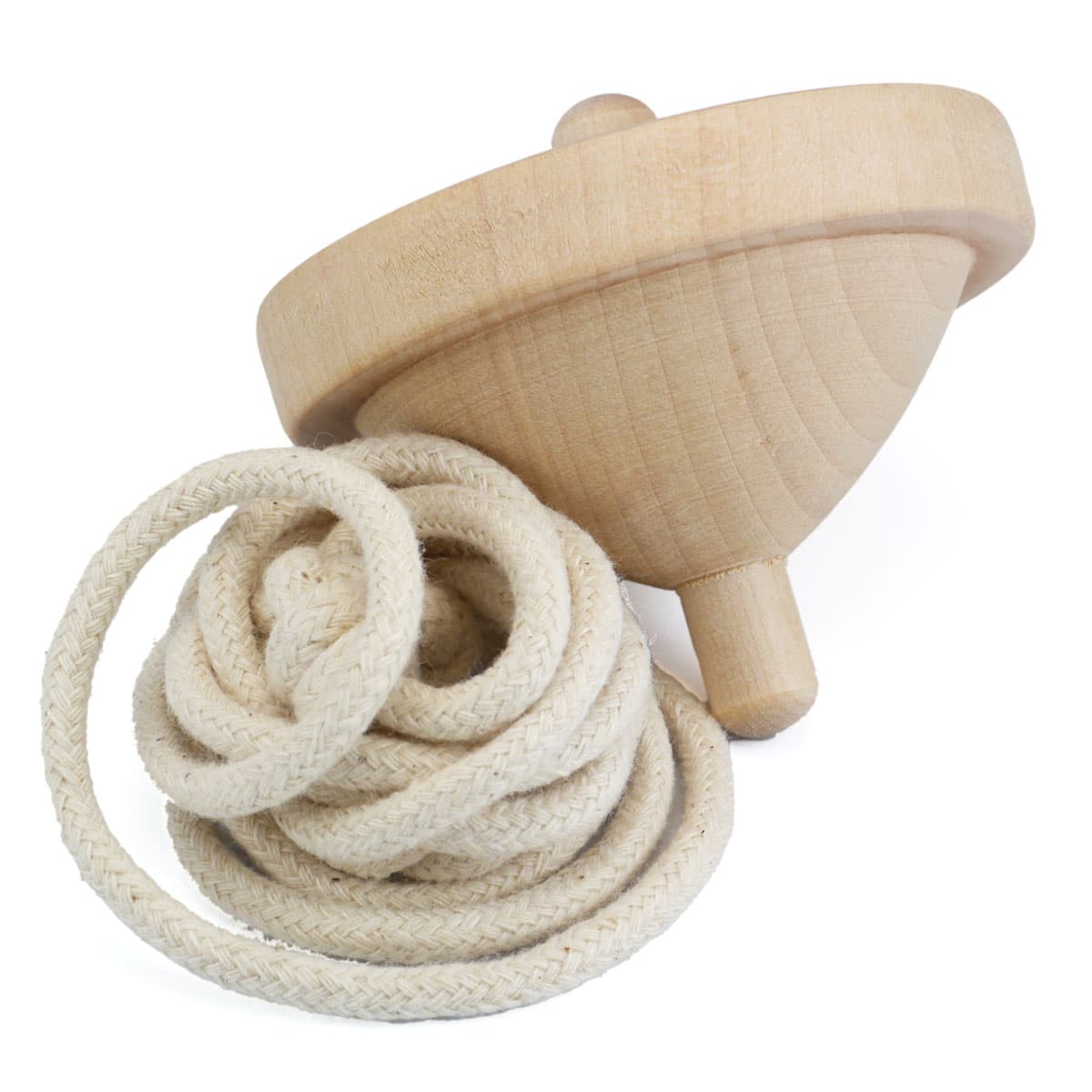 誰でもカンタンに回せる木芯こまです。こままわしの最初の壁は紐巻き。その紐巻きがやりやすいように徹底的にこだわりました。