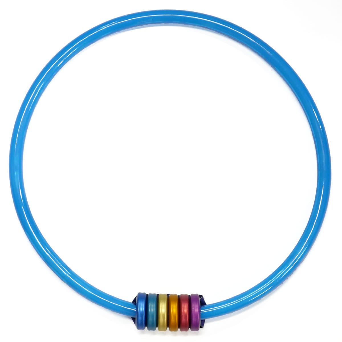 樹脂製のリングにアルミのビーズがついた、ユニークなリングです。ビーズはヨーヨーではおなじみのワンドロップによる製造です。