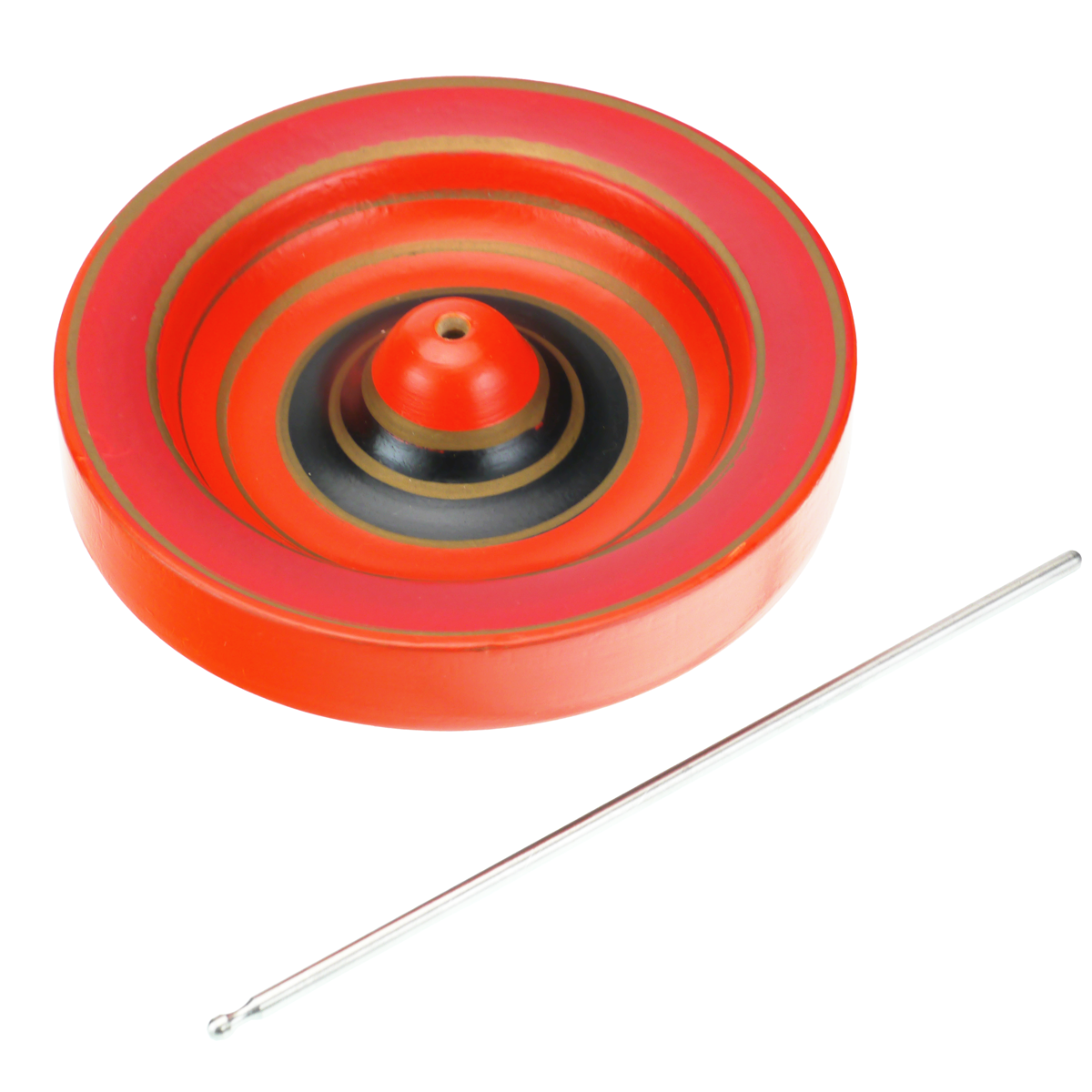This is a type of hand-operated, hand-turned, MDF material,Kyokugoma style Japanese top.