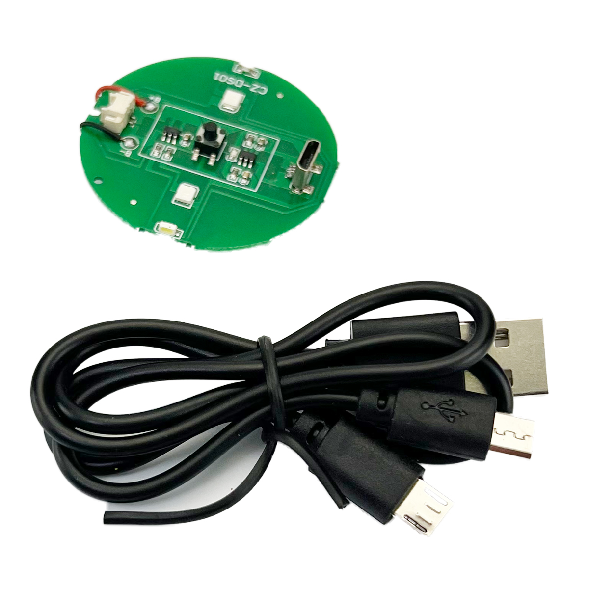 自作のヨーヨーに組み込める発光回路です。USB充電ケーブル付き。ペアでの販売価格です。