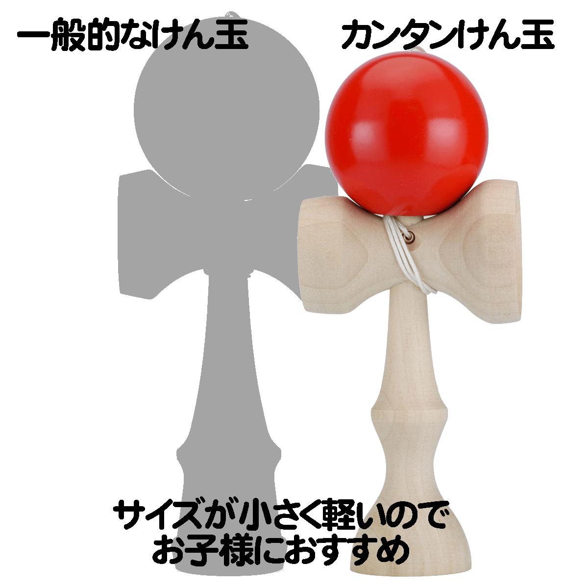 ポイント その1:一般的なけん玉より少し小さくて軽いので小さな子供でも扱いやすい