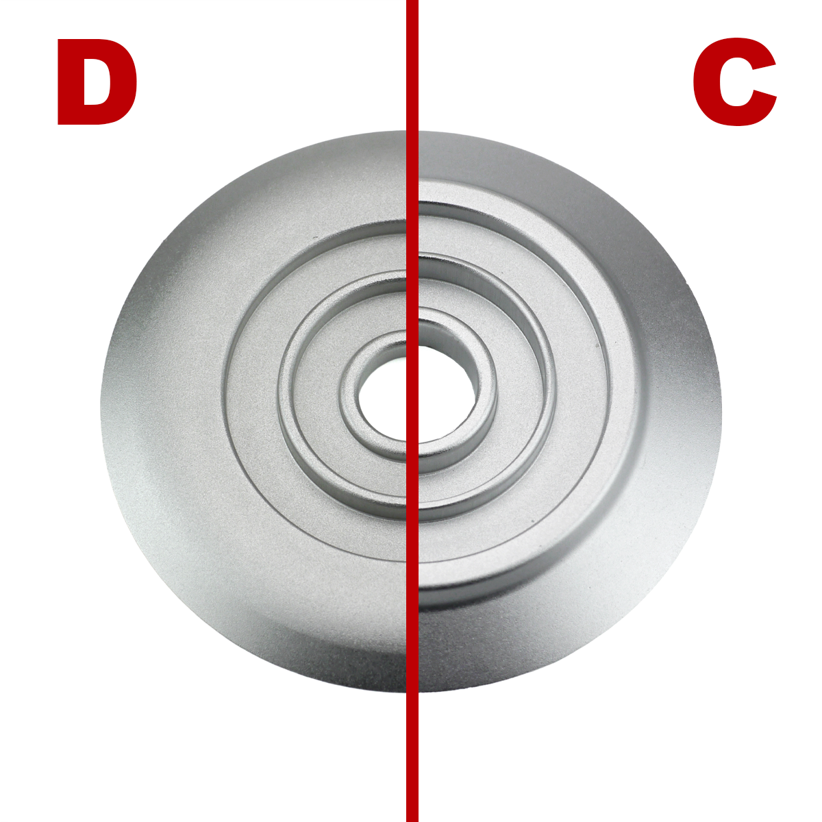スペーサーが丸みを帯びているのがDサイズ用、シャープな形状のものがCサイズ用となります。