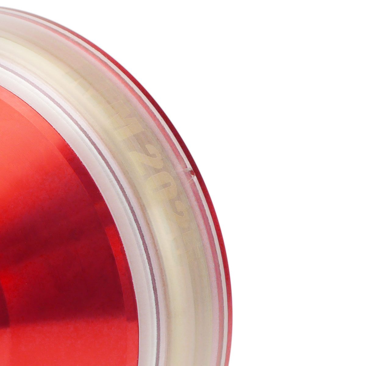 シャイニーレッドはボディのフェイスは両面ロゴなし、PCカバーの下の真鍮リムにロゴ刻印が施されています。