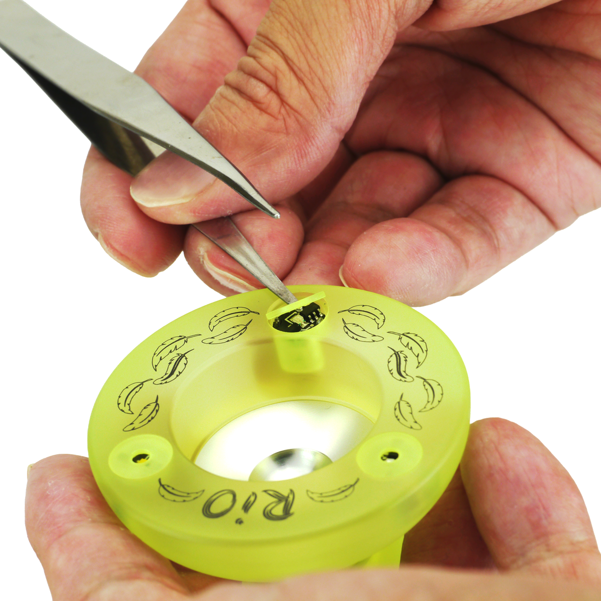 スピンギアにて打ち合わせ時、スピンギアのマグネティックLED回路を使って、光るDNAができるヨーヨーを作ったらどうかという提案を形にしてくれました。