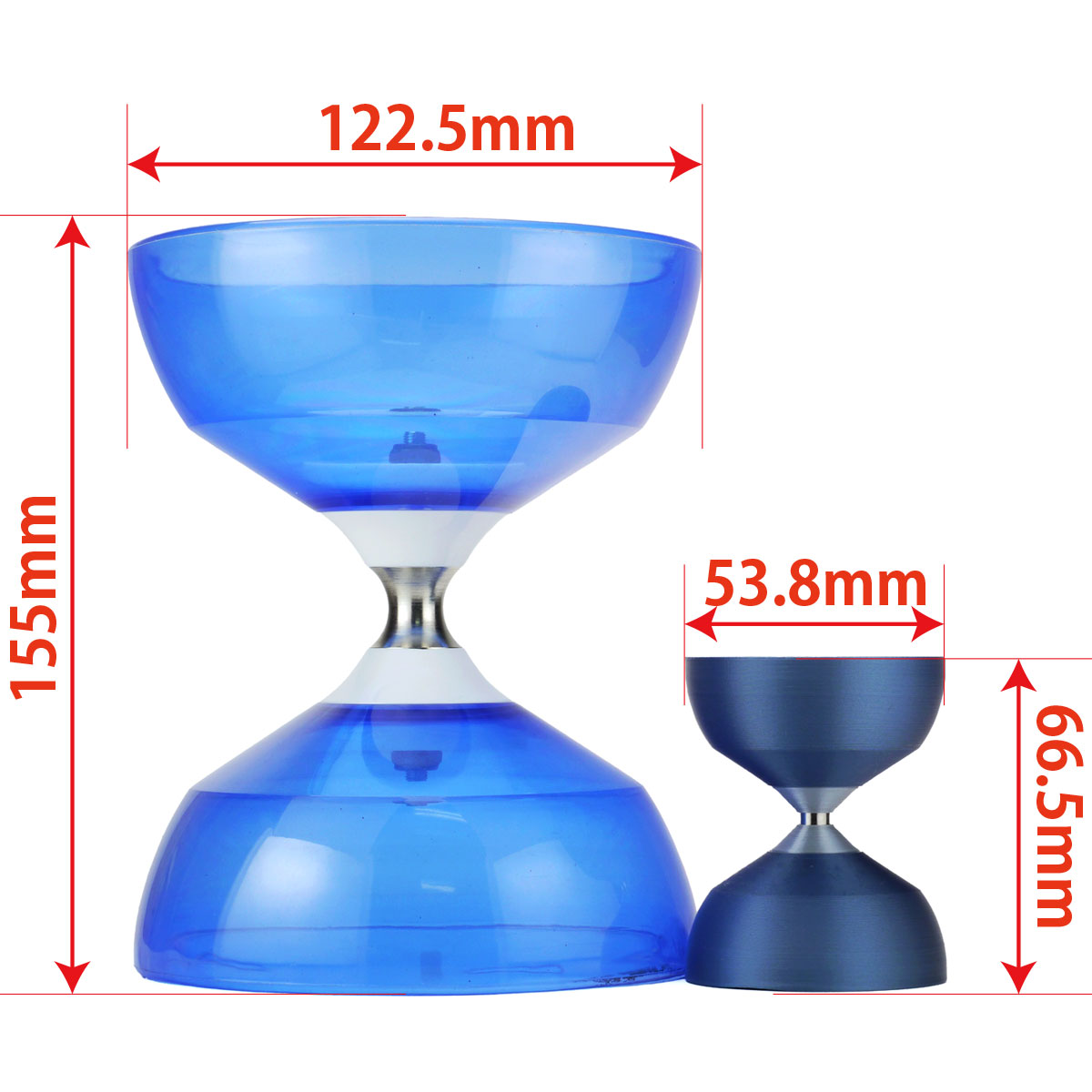 通常のディアボロ用のひもとスティックで遊ぶこともできますが、けん玉用や手芸品などに使用される細いひもと、スティックを軽量な代替可能なものをにすることで、さらなる性能を引き出すことも可能です。