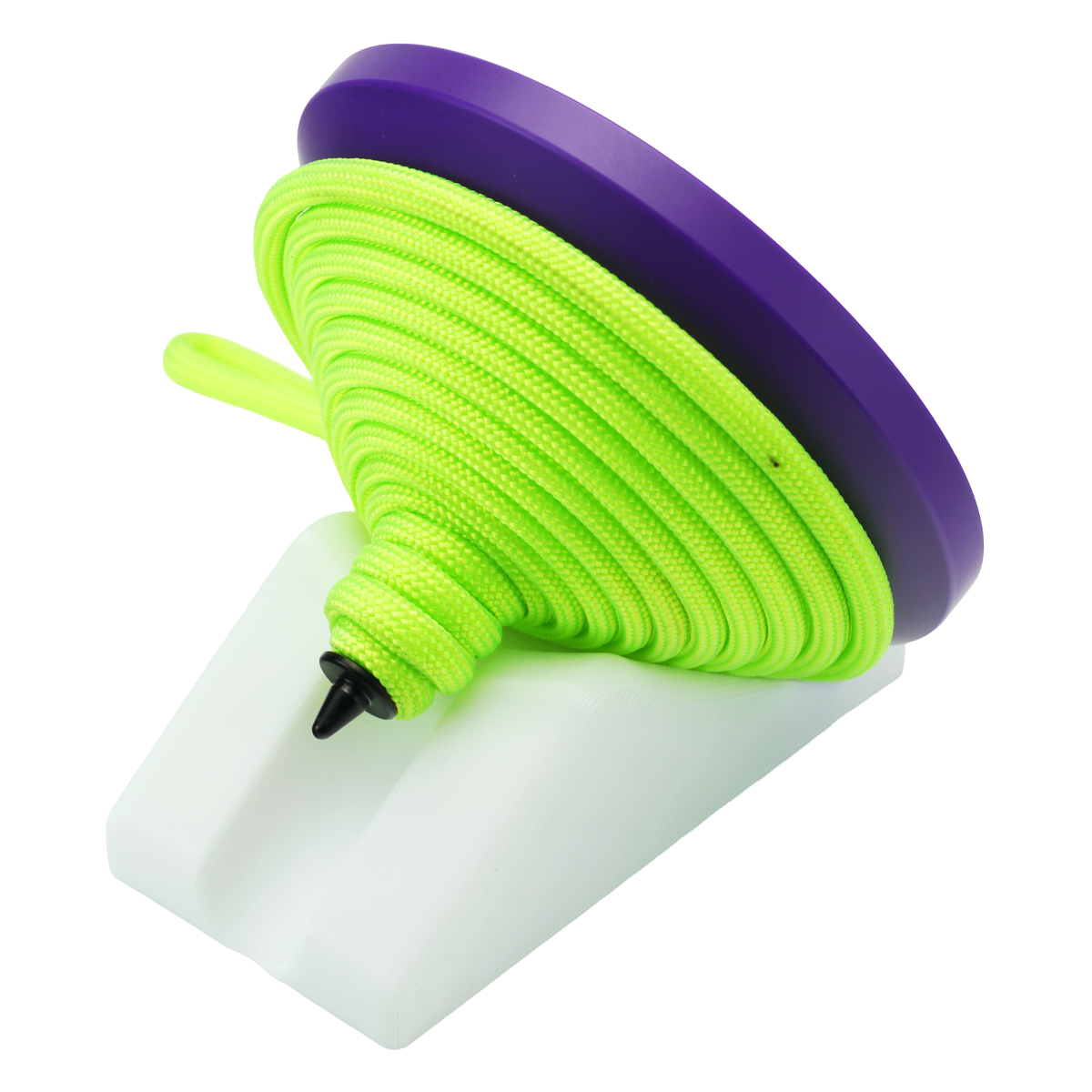 こまプレーヤーが大会で使う際にも、ひもを巻いたまま崩れにくい形で予備のこまを用意できる便利アイテムとして、先日開催されたこまワールドカップでも多くの選手が使用していた製品です。
