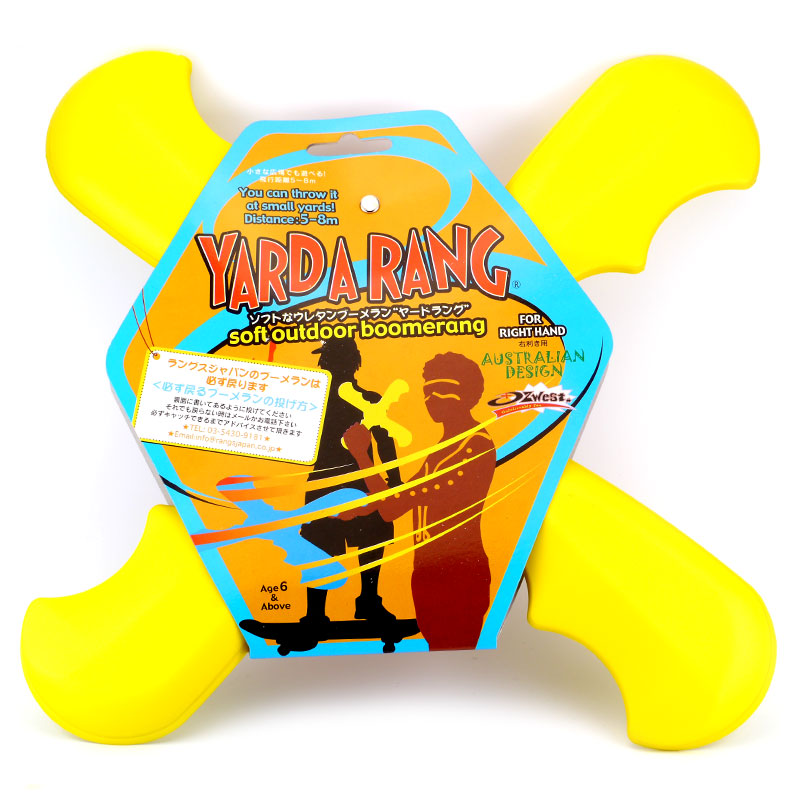 誰でも簡単に扱える、ソフトなウレタン製のブーメランです。