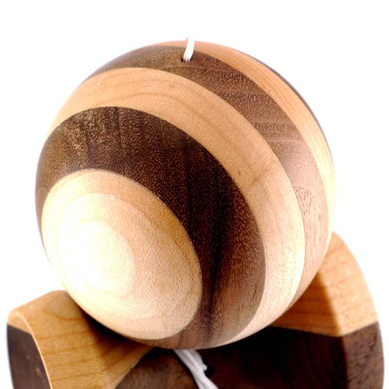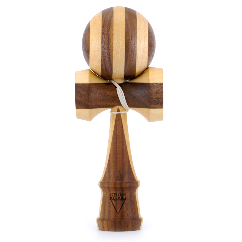 These model are two of the most beautiful kendamas the KROM Team dared imagine. The two hardwoods, walnut and maple, play together super well with a similar woodstructure and density. Together they form this beast of a kendama that has a really great sound and an amazing look. The multisplit tama is great for tracking the hole when it is flying full speed through the air. -quoted from KROM Kendama